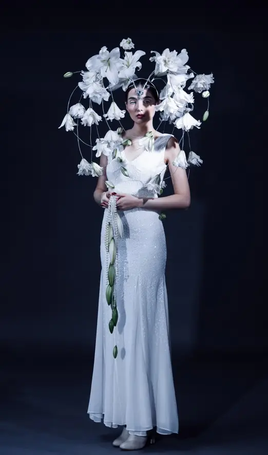 In haar toelichting op het ontwerp geeft Loshakova aan dat ze koos voor de witte lelies Zambesi en Bowl of Beauty, die voor haar symbool staan voor balans en verstilling. Het ontwerp groeide uit tot een sculpturale compositie waarin model, vorm en licht samenvloeien.