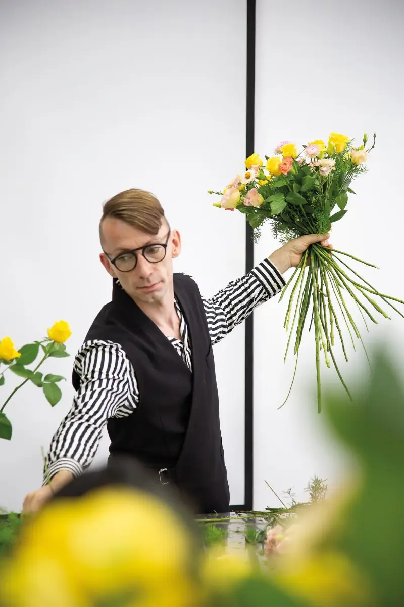 Stein Are Hansen geeft ons een inkijkje in zijn florale praktijk. Hij spoort collega-bloemisten aan tot het nemen van de leiding: ‘Lees je klanten en kies je eigen signatuur’, poneert hij. ‘Denk goed na voordat je boeket-abonnementen van 40 euro per week aanbiedt; bij een driesterrenrestaurant serveren ze ook geen pasta alla carbonara. Waarom zouden we bloemwerk dan anders benaderen?’
